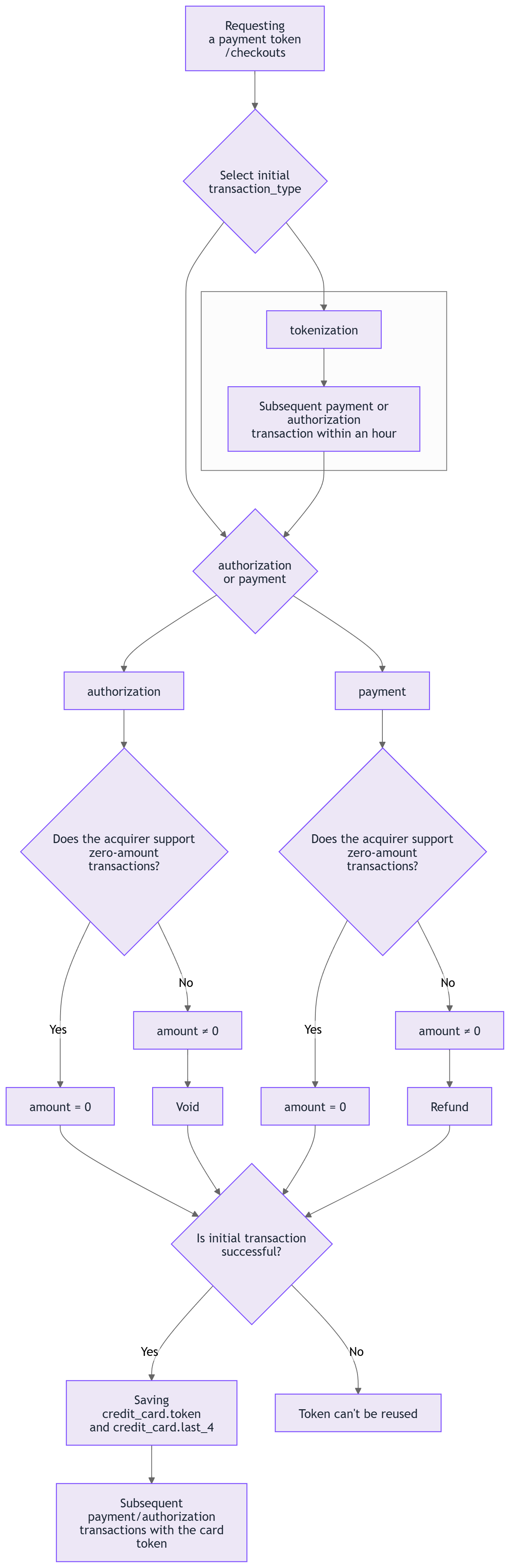 payment,authorizationortokenizationas the transaction_type; - if you are using